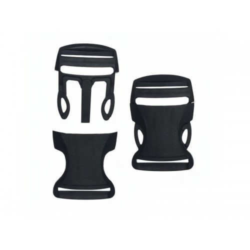 Скрепление двух частей фастекса происходит автоматически при их соединении и защелкивании. Разъединение осуществляется путем ручного зажатия боковых зубцов.