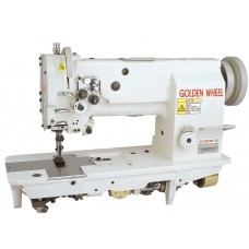 Golden Wheel CSU-4250 (комплект) Двухигольная машина челночного стежка с плоской платформой с тройным (унисонным) продвижением и увеличенным челноком. Эта модель машины наилучшим образом подходит для производства тентов, сидений, декоративных подушек, сумок, чемоданов, изделий из кожи, мягкой мебели для интерьера автомобилей и др. Благодаря тройному продвижению машина легко прошивает нескольких, сложенных в стопку, слоев тяжелых материалов. Аналог Mitsubishi LU2-4420. Дополнительно возможные межигольные расстояния: 2,4мм, 3,2мм, 4,..