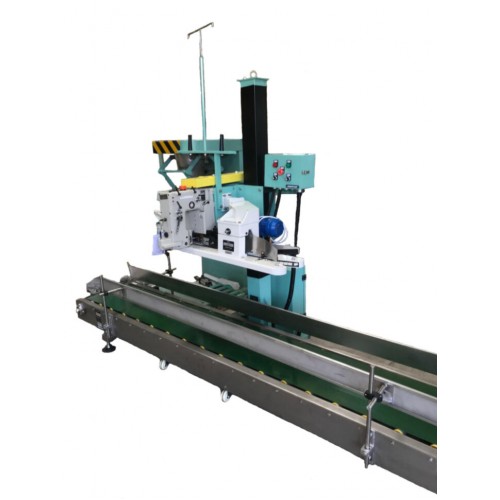 Модель А1-РВ на базе высокоскоростной мешкозашивочной машины DS-9C с устройством подгиба и протяжки мешка F5001 и автоматическим конвейером 3-5 метров. Комплекс используют как для простого зашива горловины мешка, так и для зашива с помощью креп-ленты.
