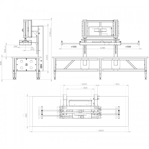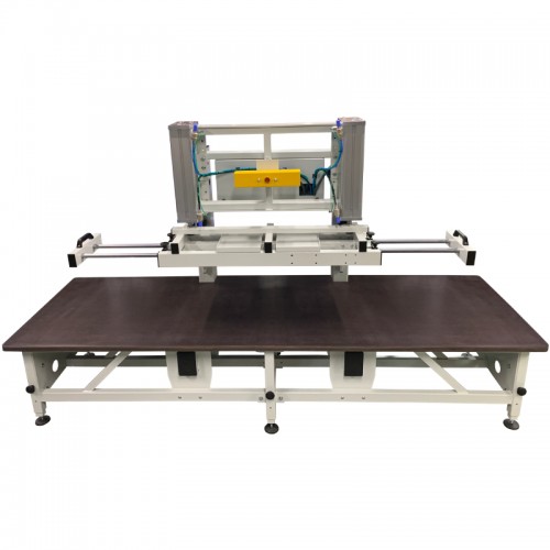 Пресс имеет специально разработанные два цилиндра и раскладывающуюся прижимную раму, которые позволяют обивать длинные и узкие элементы, такие как скамейки или изголовья.