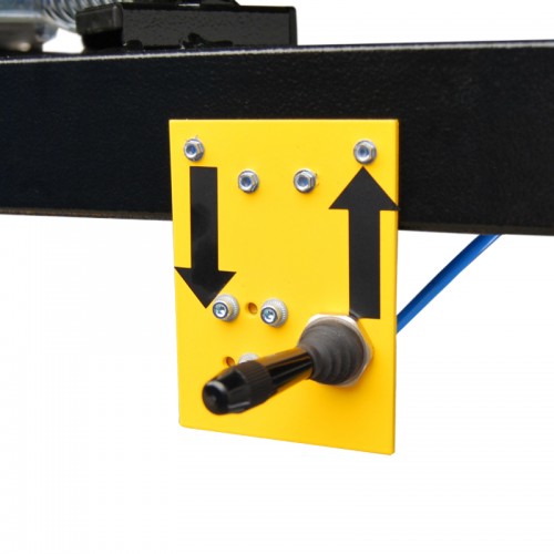 Стол изготовлен из прочных стальных профилей и оснащен пневмоцилиндром, что гарантирует его надежность и долговечность. Он имеет ножное управление при помощи рычагов-педалей и выход для подключения пневмоинструмента.