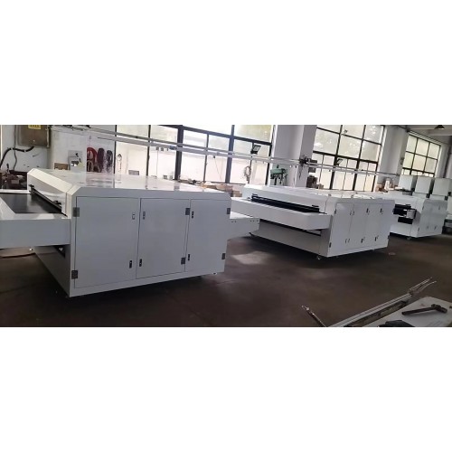 Пресс проходного типа работает по следующему принципу: детали одежды, вместе с клеевой прокладкой, располагаются на транспортерной ленте, которая двигается через специальную систему плоских верхних и нижних нагревателей. В процессе движения, нагреватели нагревают клеевую прокладку и детали одежды, чтобы они могли соединиться и стать более прочными.