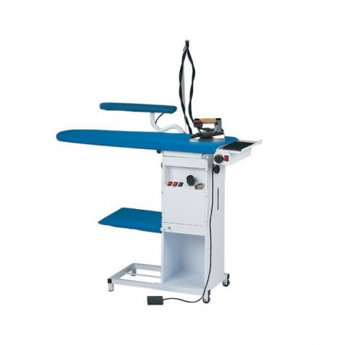 Гладильный стол консольного типа со встроенным парогенератором и утюгом с нагревом рабочей поверхности и вакуумным отсосом для влажно-тепловой обработки швейных изделий.