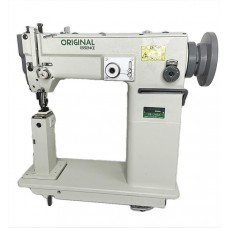 ORIGINAL GB6-181 (комплект) Одноигольная, прямострочная швейная машина предназначена для шитья супертяжелых материалов. Продвижение материала осуществляется с помощью верхнего и нижнего транспортера. Качающийся челнок дает возможность работать с нитью больших номеров. Машина применяется при пошиве палаток, мебели, кожгалантерейных изделий, упряжи, монтажных ремней. Прямострочная машина поставляется в комплекте с энергосберегающим сервомотором 900 Вт с блоком управления и столом. Характеристики: Тип стежка: челночный ..