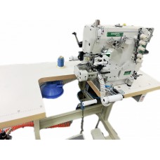 ORIGINAL OE-664PD-33ACx356/FT/RP/UT (комплект) Трехигольная, пятиниточная, швейная машина цепного стежка, рукавная, с боковым правым ножом, для подрезки края изделия и с функцией автоматической обрезкой нити. Машина оборудована пневматической системой отсоса обрези. ORIGINAL OE-664D-33ACX-356/FT/RT/UT предназначена для пришивания резинки к поясу изделия. Поставляется с прямым, энергосберегающим приводом с позицией иглы, имеет задний пуллер, механизм растяжки (ролики) изделия для пристрачивания резинки к поясу, направляющий механизм и роли..