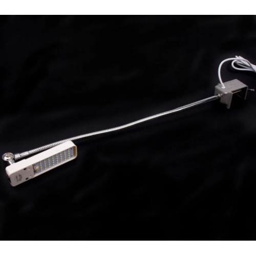 Стойка светильника крепится на стол машины с помощью струбцины на гибкой основе.