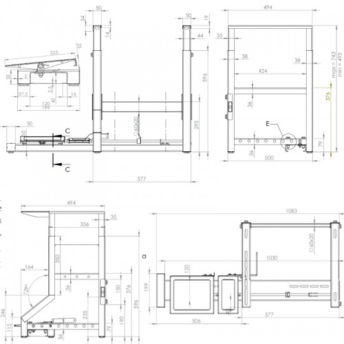 - Высоту станины можно регулировать (493 мм – 743 мм).
