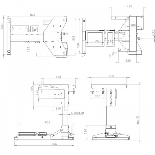 - Высоту станины можно регулировать (734 мм – 814 мм).