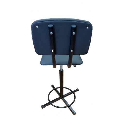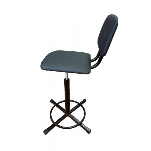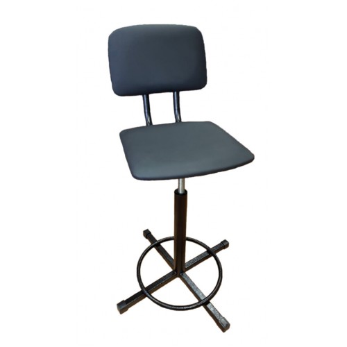 Стул винтовой промышленный с кольцом для швей, а также для предприятий, производство которых предусматривает длительное нахождение работника в сидячем положении. Стул имеет мягкое сиденье трапециевидной формы и спинку, которые покрыты чехлом из ткани или кожзама. Регулировка по высоте осуществляется с помощью надёжного винтового механизма. Прочный металлический каркас установлен на 4-х лучевую опору из металла, соединенных кольцом. Это все обеспечивает устойчивость и безопасность при эксплуатации, выдерживая нагрузку до 150 кг.