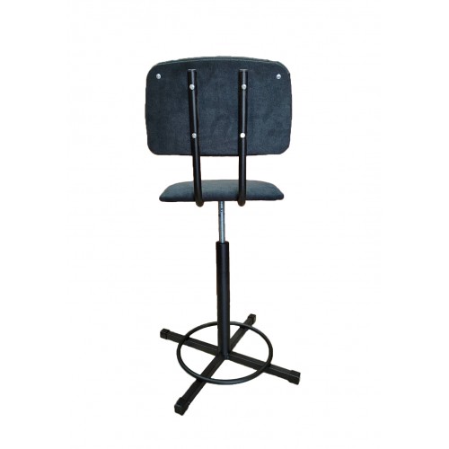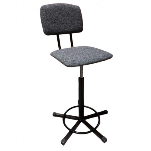Стул винтовой промышленный с кольцом для швей, а также для предприятий, производство которых предусматривает длительное нахождение работника в сидячем положении. Стул имеет мягкое сиденье трапециевидной формы и спинку, которые покрыты чехлом из ткани или кожзама. Регулировка по высоте осуществляется с помощью надёжного винтового механизма. Прочный металлический каркас установлен на 4-х лучевую опору из металла, соединенных кольцом. Это все обеспечивает устойчивость и безопасность при эксплуатации, выдерживая нагрузку до 150 кг.