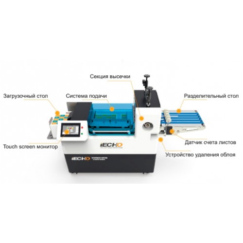 Благодаря компактным размерам и простоте в эксплуатации интеллектуальная система высечки IECHO MCT является отличным решением как для мелких тиражей, так и для больших. Применяется для высечки самоклеящихся наклеек, винных этикеток, вешалок для одежды, игральных карт и других продуктов в полиграфической и упаковочной сфере. IECHO MCT обладает высокой производительностью благодаря автоматической подаче и точной системе выравнивания листов, оснащен магнитными лезвиями и может выполнять различные виды высечки: полная резка, половинчатая резка, перфорация и биговка.