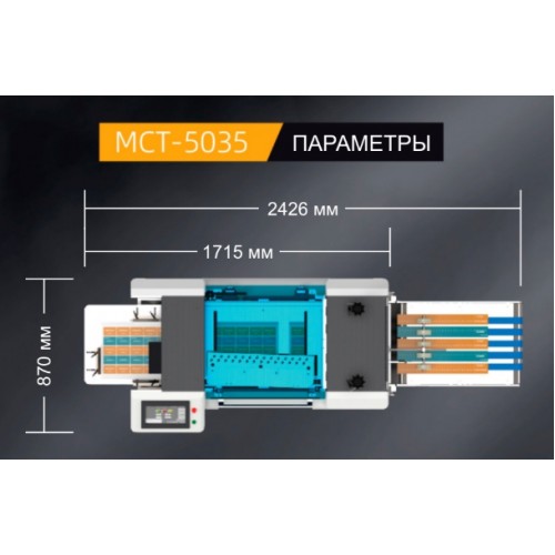 Характеристики IECHO MCT включают размеры 2420 мм х 840 мм х 1650 мм, вес 1000 кг, максимальный размер бумаги 508 мм х 355 мм, минимальный размер бумаги 280 мм х 210 мм и максимальный размер штампа 350 мм х 500 мм. Она также имеет высокую точность высечки, максимальную скорость высечки 5000 листов в час, плотность бумаги 70-400 г/м2 и вместимость загрузочного стола 1200 листов.