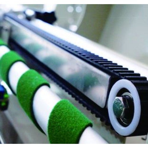 - Автоматическая сервоприводная система с помощью датчика отслеживает частоту вращения подающего текстиль вала, синхронизируя его с частотой вращения основного сервопривода, что обеспечивает настилание без натяжения с высокой точностью.