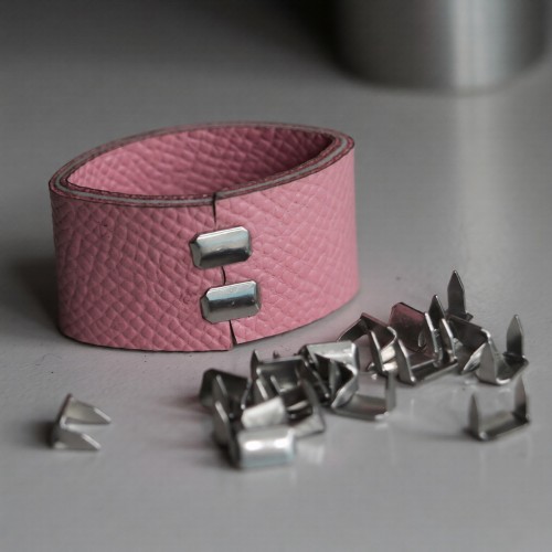 Для производства шлевок (тренчиков) помогает скрепить при помощи скобы шлевку между собой.