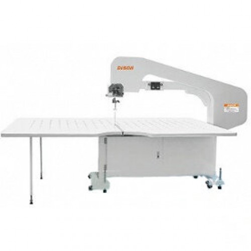 Передвижная раскройная машина с вертикальным ножом предназначена для вырезания деталей края в т.ч. и сложной формы. Снабжена механизмом автоматической заточки.