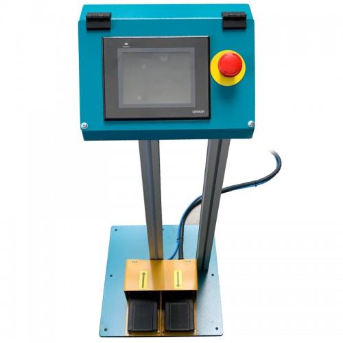 К основным характеристикам станка относятся ручная отрезная линейка OT-1/R, ручная прижимная планка с магнитами для удержания материала перед резкой, сенсорная панель управления и энкодер. Энкодер позволяет установить нужную высоту и точно регулировать длину резки материала при перемещении горизонтальной балки после нажатия педали.