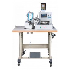 Автоматическая пуговичная машина, однониточного цепного стежка с прямым приводом, обрезкой ниток и электронными функциями, для пришивания круглых, плоских пуговиц на 2 и 4 отверстия двумя параллельными строчками.