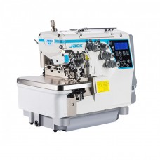 Jack C6-5-03/233 (комплект с обычным столом) Высокоскоростная пятиниточная двухигольная стачивающе-обметочная машина цепного стежка (5-ти ниточный оверлок) с электронным управлением и автоматическими функциями Применение: для стачивания цепной двухниточной строчкой с одновременным обметыванием трехниточной цепной строчкой при пошиве изделий из легких и средних по толщине материалов Преимущества: Автоматические функции: обрезка нитей (короткие концы после обрезки – 5 мм), подъем лапки, индикатор начала строчки, остановк..