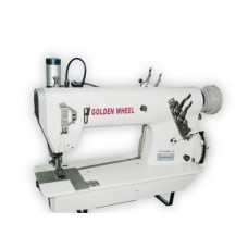 Golden Wheel CS-5912DY (комплект) Высокоскоростная двухигольная машина двухниточного цепного стежка с плоской платформой с верхним и нижним продвижением. Машина предназначена для выполнения операции «шов в замок», благодаря чему материал защищается от преждевременного изнашивания при этом машина обеспечивает стабильное качество ровного и аккуратного шва. Механизм верхнего и нижнего продвижения обеспечивает уменьшение сдвига сшиваемых слоев относительно друг друга, особенно для скользящих или труднопродвигаемых материалов. Бла..