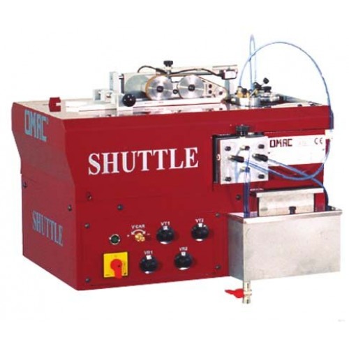Горизонтальная ремнекрасительная машина OMAC Shuttle, Италия предназначена для окраски кромок и кончиков ремней, полос, лент и т.п. (любой формы, не обязательно прямые). Выполняет одним циклом окраску носика и кромок произвольной формы благодаря запатентованному механизму. Оператор может легко регулировать скорость подачи и ширину рабочей области.