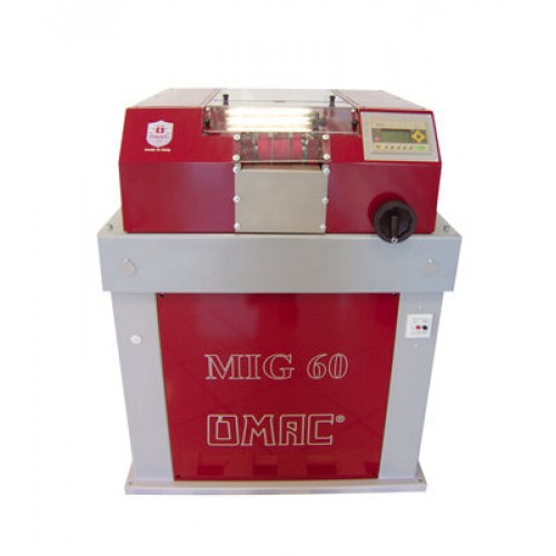 Полировочная машина OMAC MIG 60, Италия с 2 или 4 щетками активными одновременно для горизонтальной зачистки и полировки кромок ремней разного рода полос с возможностью автоматической полировки носика.