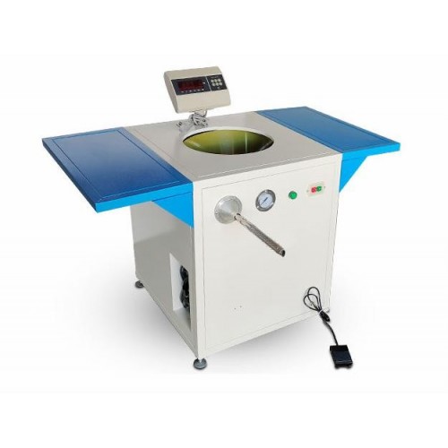 Принцип работы: загрузите пух или волокно в загрузочную воронку до тех пор, пока монитор не покажет желаемый вес, затем нажмите на педаль и загрузите весь пух или волокно в изделие.