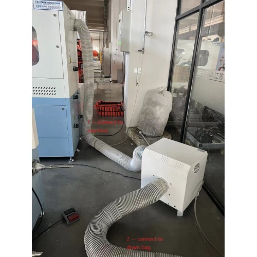 Данная машина оборудована системой защиты от пыли в мастерской и не только оставляет рабочее место чистым ,но и позволяет максимально снизить потери пуха при наполнении изделия, отделяя пыль от пуха -позволяет использовать остаточный пух.