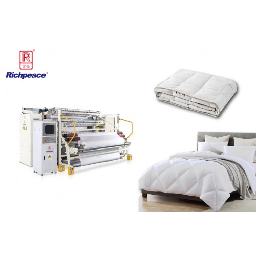 Стегальная машина Richpeace RPQC-NM-L1500D-26+25-315×2625-105S50-VR3-NA-3P380 - высокоскоростная многоигольная челночная стегальная машина, предназначенная для многоигольного стегания различных изделий, таких как зимние одеяла, летние стеганые одеяла, покрывала, наматрасники и матрасы.