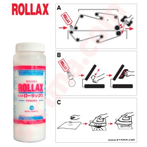 Способ применения: - включить оборудование - разогреть поверхность для чистки - посыпать либо помазать Rollax-ом - подождать пока порошок раствориться и проникнет в остатки клея - вытереть поверхность сухим полотенцем
