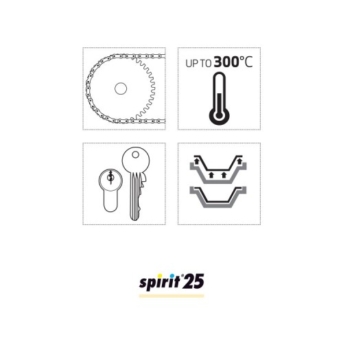 Spirit 25 - это сухая смазка спрей на основе PTFE - тефлоновое покрытие. Обеспечивает сухое пленочное покрытие, облегчающее скольжение движущихся деталей, снижающее трение и износ. Высокая термостойкость (до +300°C). Устойчива к агрессивным средам. Смазочное покрытие без маслянистого остатка. Не притягивает пыль.