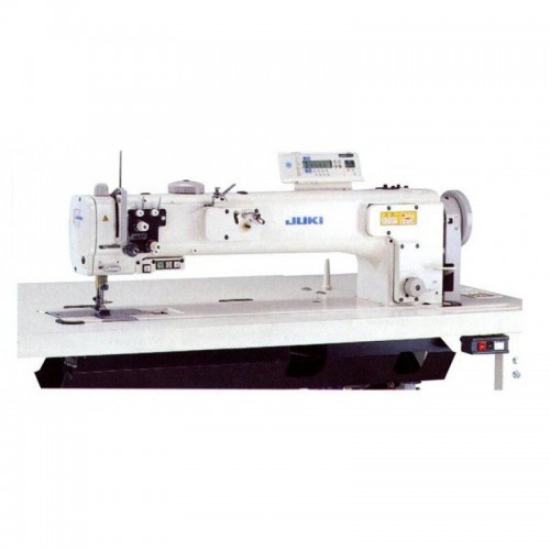 Швейная машина челночного стежка с удлиненной консолью, унисонной подачей и большим челноком с вертикальной осью вращения.