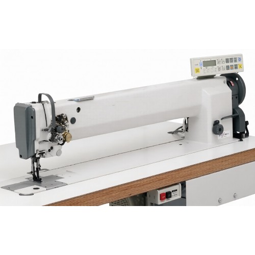 Прямострочная машина с увеличенным вылетом рукава 800 мм, с задним гладким пулером для продвижения материала, диодной подсветкой. Прямой привод встроенный в голову, обеспечивает низкое потребление электричества и высокую производительность.