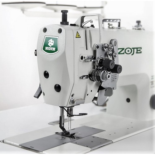 Одноигольная машина челночного стежка с плоской платформой, нижним транспортером и встроенным серводвигателем.