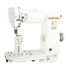 Golden Wheel CS-8371 (комплект) Одноигольная машина челночного стежка с высокой платформой колонкового типа (правостороннее положение платформы) с унисонной подачей материала и увеличенным челноком предназначена для сшивания объемных (трехмерных) деталей при производстве ботинок, сумок, чемоданов. Особенности модели: Широкий спектр применения. Механизм унисонного продвижения материала обеспечивает высокое качество готовых изделий. Благодаря особенностям дизайна колонки машина может использоваться для сшивания мелких изогнутых д..