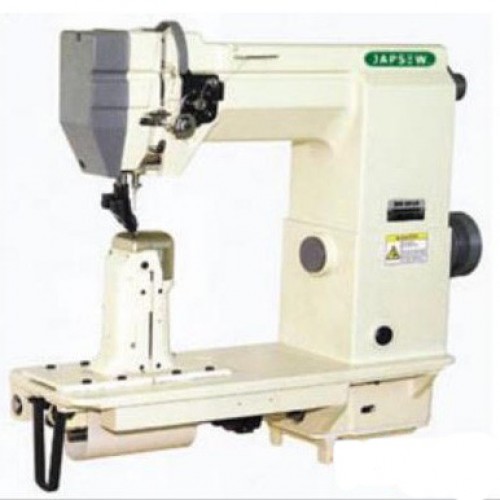 Одноигольная колонковая машина челночного стежка с унисонной подачей верхнего и нижнего ролика и иглы. Машина предназначена для шитья сумок, обуви, кожгалантереи. Система подачи ткани состоит из прижимного ролика, гребенки продвижения роликового типа и отклоняющегося игловодителя. Рекомендуется для тяжелых материалов и кожи