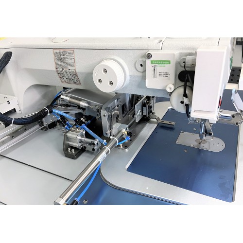 Одноигольный, программируемый, швейный автомат челночного стежка с прямым приводом для настрачивания мелких деталей по контуру в поле 300 на 200 мм. Автомат предназначен для выполнения различных программируемых строчек в области шитья 300 на 200 мм на изделиях различных типов материалов от средних до средне-тяжелых, а также для декоративной отделки одежды, сумок, обуви, пошива строп, монтажных ремней, спортивного, туристического и военного снаряжения. OE-5770-3020GB-CH имеет пневматическую двухходовую систему прижима изделия. Первая система прижима фиксирует основную деталь, к которой пришивается заготовка (этикетка, шеврон), вторая система прижима фиксирует саму заготовку при прошивании 50% заготовки, далее прижим отъезжает в сторону (по оси Х) и прошиваются оставшиеся 50% заготовки. OE-5770-3020GB-CH Имеет автоматические функции: обрезку нити, подъем лапки, закрепку, позиционирование иглы. Машина выполнена на базе BROTHER.