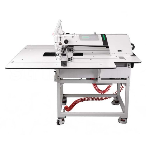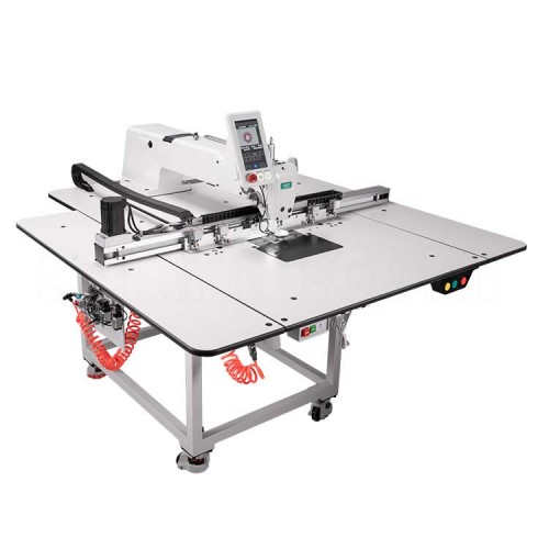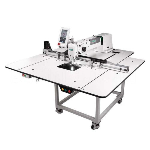 Промышленная автоматизированная швейная машина одноигольного челночного стежка для шитья по шаблонам и стежки мелких деталей с рабочим полем 1000 х 500 мм. Предназначена для лёгких, средних и тяжелых материалов. С автоматическими функциями стежки по шаблонам, фиксированного стежка, автоматической закрепки в начале и в конце строчки, автоматического программируемого шитья по заданному контуру.