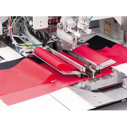 | Автоматические функции | Цветной графический дисплей OP 7000 для программирования 200 различных программ карманов, 40 последовательностей с максимум 8 возможными ячейками памяти, возможность программирования закрепки шва или уплотнения стежка, длины стежка, коррекции центрального и угловых ножей, скорости шитья и скорости продвижения материала. Режим "трикотаж". Автоматическая регулировка зажимов с растяжением материала. Дополнительное включаемое натяжение нитей. Датчик обрыва игольной нити. Датчик контроля остатка нити на шпуле. Копирование параметров машины через USB-накопитель. Сохранение параметров в ID машины. Автоматическая станция угловых ножей. |