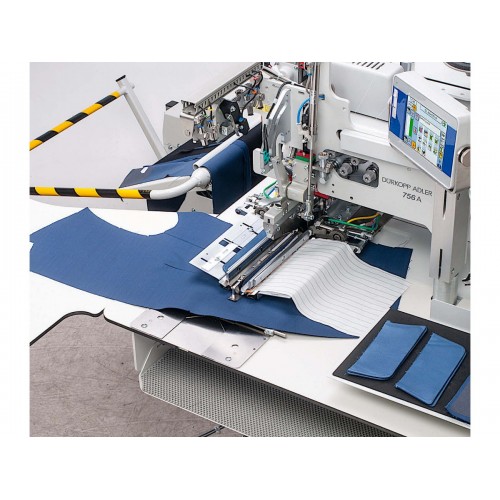DA 755 A - Швейная установка для изготовления прямых карманов в рамку с двухсторонней или односторонней обтачкой. Ручная загрузка мелких деталей, например обтачек, клапанов карманов. Область применения: например, карманы для брюк, карманы для подкладки, карманы для спортивной одежды, карманы для пиджака.