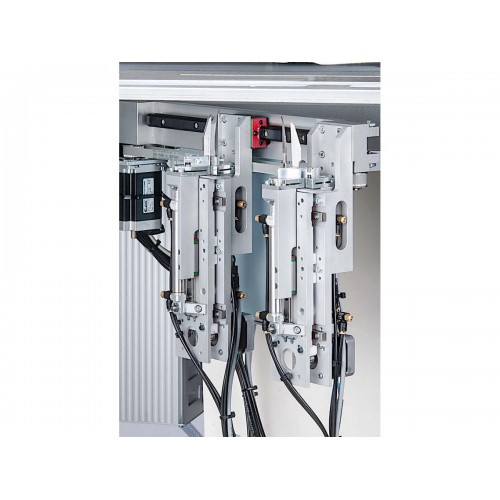 - Привод центрального ножа контролируется шаговым двигателем. Возможна регулировка величины вертикального хода ножа для адаптации к толщине материала. Уменьшение износа ножа за счет автоматической регулировки скорости прорезания ткани к параметрам кармана и толщине материала.