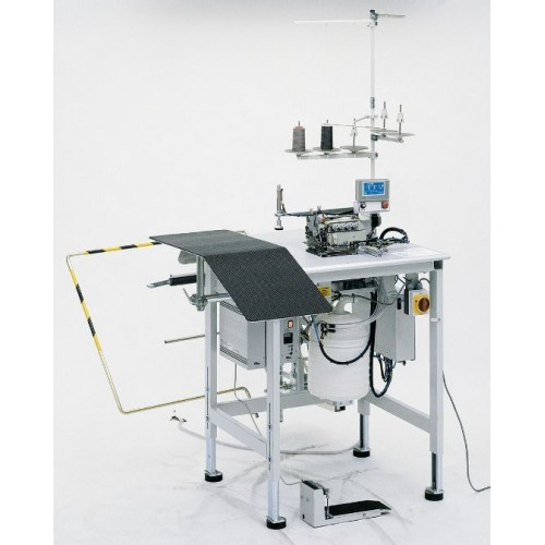 Этот швейный автомат обладает высокой производительностью, позволяя выполнять 1 550 - 1 700 боковых швов, 1 700 - 1 900 шаговых швов и 380 - 400 комплектных брюк за 480 минут. Он оснащен швейной головкой, автоматическим распознаванием фотоэлементом начала и конца шва, аппаратом для направления контура и другими полезными функциями.