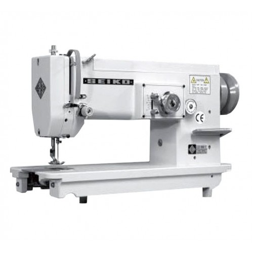 Одноигольная машина челночного стежка с плоской платформой трехукольной(двухшаговой) зигзагообразной строчки с нижним продвижением. Увеличенный челнок с горизонтальной осью вращения. Скорость 2800 об/мин, длина стежка до 4.5 мм, ширина зигзага 0-9 мм, подъем лапки 9 мм, ход игловодителя 35.6 мм, тип иглы DPx17(#19), используемая нить в стандарте - #30. Полуавтоматическая смазка. Рабочее пространство 258x110 мм.