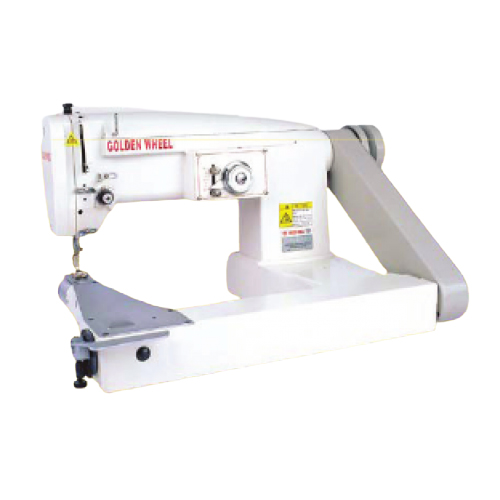 Одноигольная машина челночного стежка строчки зиг-заг с П-образной платформой с верхним и нижним продвижением и увеличенным челноком (четырехукольный зиг-заг) предназначена для сшивания труднопродвигаемых эластичных и растягивающихся материалов, при производстве водолазных костюмов, обуви, в том числе сапогов, парусов, брезентовых пальто и др. П-образная платформа позволяет использовать машину при работе с изделиями цилиндрической формы.
