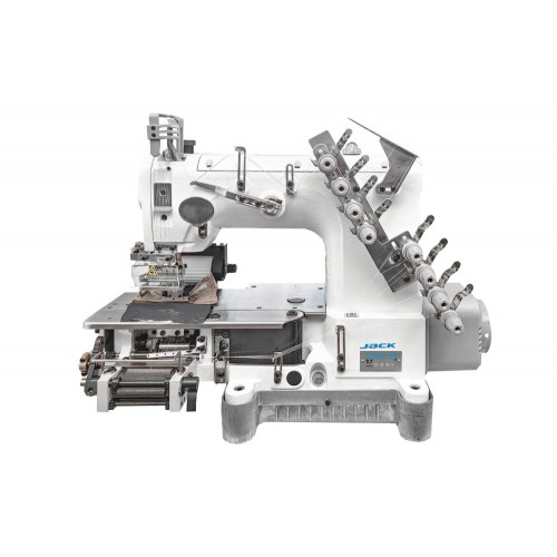 Промышленная швейная машина Jack JK-8009VCDI-04095P/VWL (комплект) - это четырехигольная машина цепного стежка с встроенным серводвигателем и приспособлением для передней натяжки резинки. Она предназначена для обработки пояса поясных изделий из средних по толщине материалов.