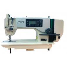 Zoje A8000-D4-HG/02 (комплект) Одноигольная, прямострочная промышленная швейная машина челночного стежка с нижним продвижением ткани, со встроенным в корпус сервомотором и блоком управления, с кнопочным пультом, с автоматическими функциями: позиции иглы, закрепки, подъема лапки, и обрезки ниток, механизмом фиксирования верхней нити, регулировкой позиции иглы, возможностью пошагового шитья, стежок 7 мм, увеличенный челнок, предназначена для шитья средних и средне-тяжелых материалов. Подходит для шитья спецодежды и пальтово-костюмного ассор..