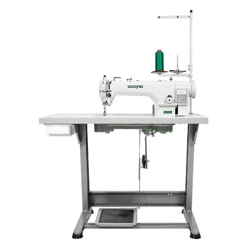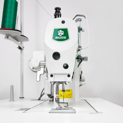 Одноигольная машина челночного стежка с нижним продвижением материала Zoje ZJ9703HAR-D4 для шитья средних и тяжелых материалов, с увеличенным челноком, максимальной длиной стежка - до 11 мм, с автоматическим позиционированием иглы, обрезкой нити, подъемом лапки и закрепкой, и удлинённым рукавом 33 см.