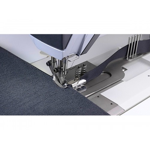 Специальная версия одноигольной промышленной швейной машины челночного стежка с нижним, игольным и альтернирующим верхним транспортером, с большим вертикальным челноком, для окантовочных работ (подъем нижнего транспортера отключен). Длина стежка 8,00 мм, с предохранительной муфтой. Окантователь в комплект не входит (заказывается отдельно). Без автоматических функций, в комплекте со столом и сервомотором.