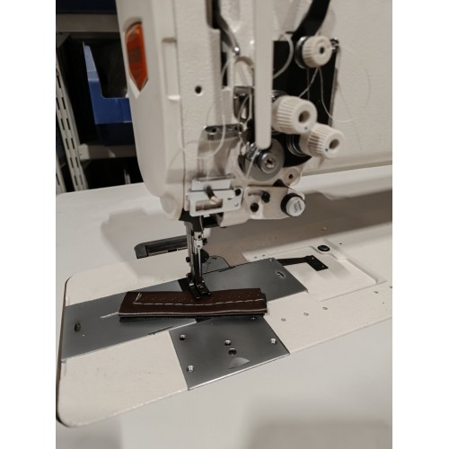 Этот комплект включает в себя головку машины, промышленный стол и сервомотор увеличенной мощности 900 Вт. Преимущества этой модели включают в себя вылет рукава 635 мм для работы с крупногабаритными изделиями, подъем лапки коленоподъемником, мощность сервомотора 900 Вт, пневмо-подъем лапки и пневмо-закрепка.