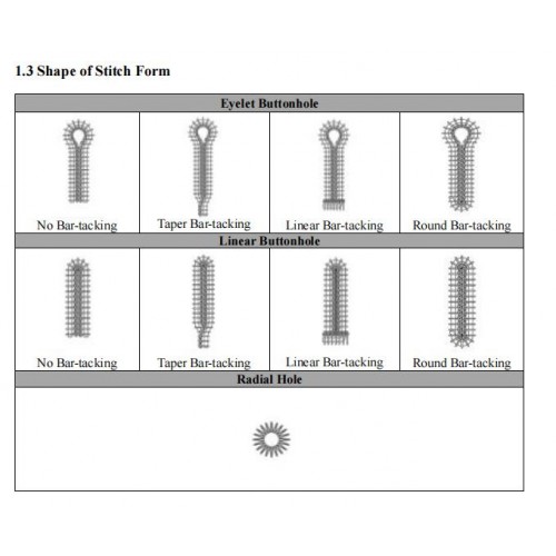 Машина предназначена для обметывания петель «с глазком» в верхней одежде из костюмных, джинсовых тканей (длинная нить после обрезки)