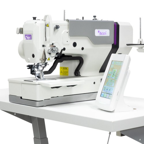 TEXI O NEO PREMIUM EX - это полностью автоматическая машина для пришивания петель с компьютерным управлением, оснащенная встроенными быстрыми и точными шаговыми двигателями, работающими по осям x и y, и системой прямого привода с серводвигателем, установленным в головке машины. сенсорная панель управления.